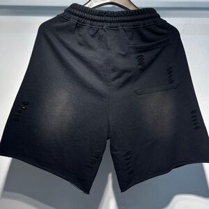Stylish and comfortable men's black shorts with a distressed design. Perfect for casual outings.