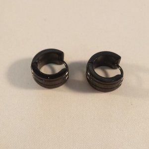 Beautiful classic design black stainless steel etched frosted sandblast hoop huggie earrings. Polished shine, brand new, never been worn. Lead, nickel free. These earrings sparkle.