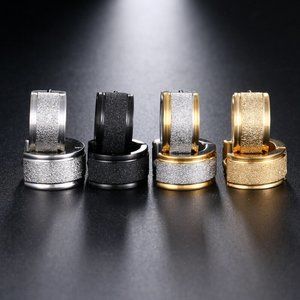 Mens Black Frosted Sandblast Stainless Steel Hoop Earrings 13mm Party Gift