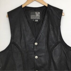 Mens Black Genuine Leather Braided Motorcycle Vest by USA Bikers Dream Apparel Size 50