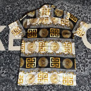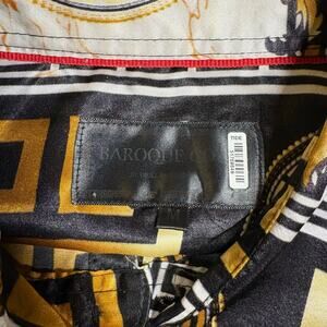Mens Black Gold versa style Dress Shirt Luxury Baroque Print Casual S/S Size M