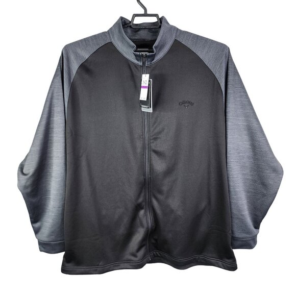 Mens Black & Gray Callaway Jacket Full-Zip Mock Neck Long Sleeve XXL