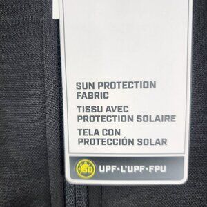 This Callaway full-zip jacket provides sun protection with its advanced fabric. The black and gray design offers a sleek, professional look.