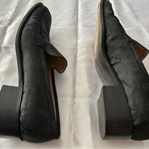 Men’s Black Gucci loafers / dress shoes. Gorgeous logo pattern size 9B