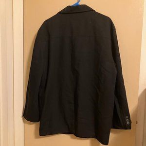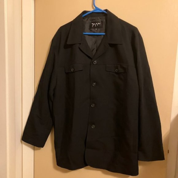Men's Black Shirt/Jacket - Shacket? Button Down. Two Chest Pockets. Pockets on the Side. Buttons on the Sleeves. Inner Lining. Measures 23-1/2" p2p, 32" long.