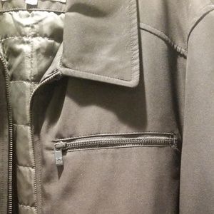 Shell 100% polyester, lining body and sleeves 100% polyester, pockets 100% cotton, and fill 100% polyester