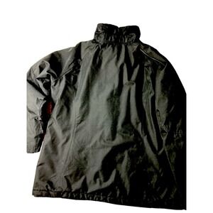 Men’s black Land’s End XL insulated jacket. Shell is polyester, lining nylon and insulation 100% polyester. Small area w/some wear from Velcro collar..see last pic.