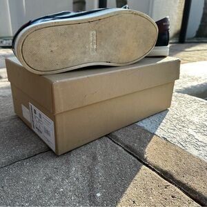 Step out in style with these sleek black leather sneakers. Perfect for any casual outing.