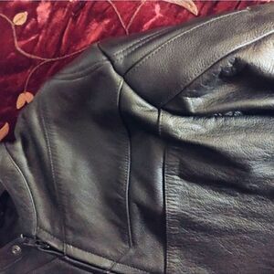 Elevate your style with this sleek black leather jacket. Perfect for any occasion, this jacket offers both comfort and sophistication.