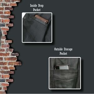 Versatile Classic Jacket-Style Vest with A Snap Front Closure. Made from Top Quality 1.0 - 1.1 Mm Real Leather with Soft Satin Liner. Premium Quality. Has Multiple Pockets, 2 Concealed Pockets on The Inside and 2 Pockets on The Front.