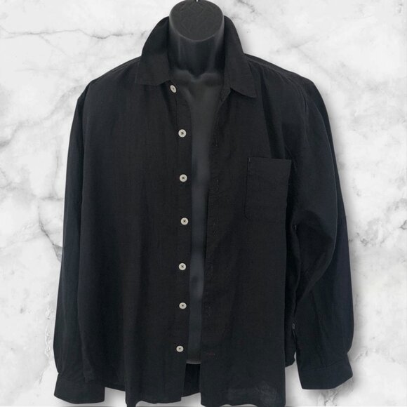 Men's Black Linen Long Sleeve Button Up Shirt XL USA