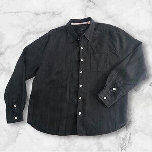 True Grit nice quality Black Linen Long Sleeve Button Shirt XL