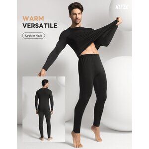 Men's Black Long Johns Imported Thermal Underwear Fleece Lined for Cold Weather