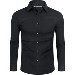 Men's Black Long Sleeve Slim Muscle Fit Wrinkle Free Button Down Dress Shirts