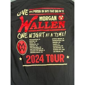 Get ready to rock with this awesome Morgan Wallen tour tee! This black t-shirt features the "One Night at a Time" design and is in excellent condition. Perfect for any country music fan, this tee is a great way to show your love for Morgan Wallen.
