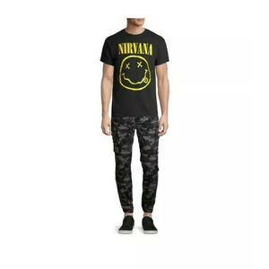Men's Black Nirvana Smile Graphic Tee T-Shirt Size S 34/36 New
