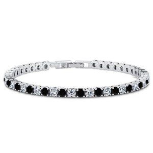 Mens Black Onyx 2ct Diamond Tennis Bracelet 18K White Gold Silver Jewelry 7" 8"
