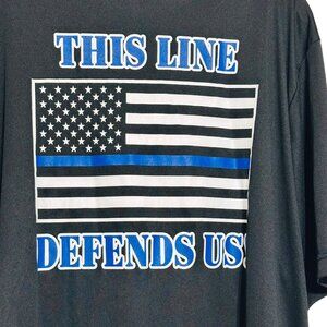 Defend the Police Black Polyester T-Shirt Men's XL American Flag Short Sleeve