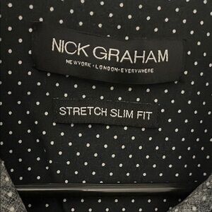 Upgrade your wardrobe with this stylish black polka dot shirt from Nick Graham. Perfect for casual outings, this shirt combines comfort with a modern design.