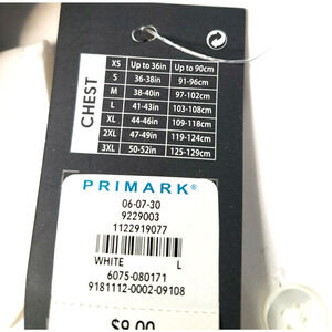 Men’s black 3-piece suit set by Primark, including a 40/40L jacket, 34x30 pants, white dress shirt, and matching vest. All items are new with tags attached and were purchased but never worn. Classic, tailored look ideal for formal events, business, or interviews.