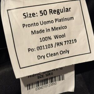 Men’s Black Pronto Uomo matching suit, suit coat is size 50 Regular, pants are size 42 Regular