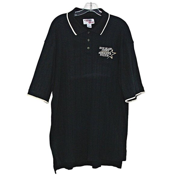 Hero 24/7 Mens Black Rock Island County Illinois Sheriff's Police Polo Shirt Size XL. Condition: Pre-Owned, In Good Condition, Faded line on front of shirt - see photo - could be dyed or tinted if you choose. Chest Size: 24 in. Shirt Length: 32.5 in. Smoke free and Pet free home.