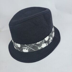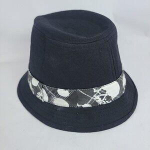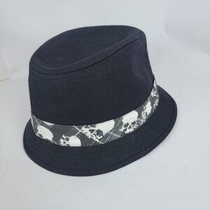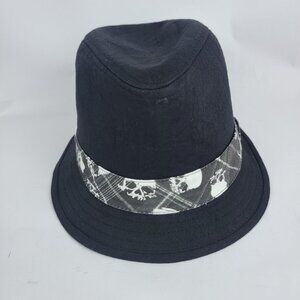 Mens Black Short Brimmed Fedora Hat Cap Edgy Punk Skull Androgynous