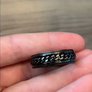 Men’s black and silver metal spinner ring