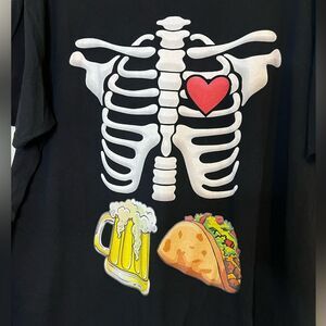 Men’s Black Skeleton Beer Taco Short Sleeve Tee Size XL