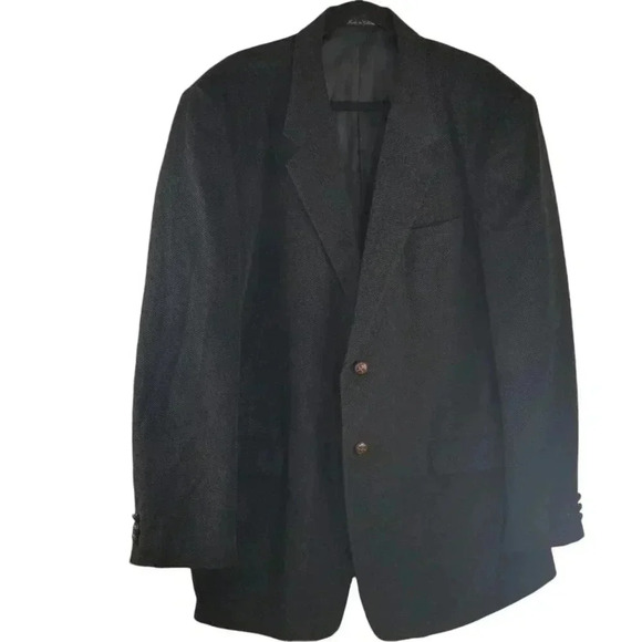 Monsieur Adolfo men's black sports herringbone corduroy blazer size 44L. 100% cotton exterior and lining 100% polyester. Pit to pit 24", length 34", and sleeve length 26.5". 3 exterior and 3 interior pockets and 1 interior pen pocket. Excellent pre-owned condition. Bundle and save. Ships same or next day.