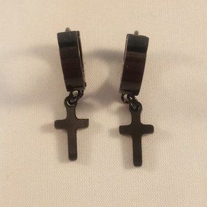 Beautiful classic black cross hoop huggie earrings black stainless steel. Polished shine, top quality, brand new, never been worn. Lead, nickel free.