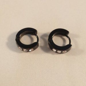 Beautiful classic design zircon black hoop huggie earrings black stainless steel with small sparkling clear white simulated diamond zircon gemstones. Polished shine, brand new, never been worn. Lead, nickel free.