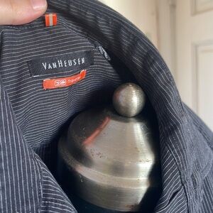 Elevate your style with this sleek black striped shirt. Perfect for any occasion, this shirt offers a classic look with a modern twist.