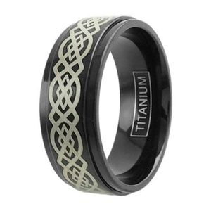 Men's Black Titanium Celtic Knot Band Ring Size 13