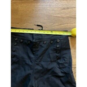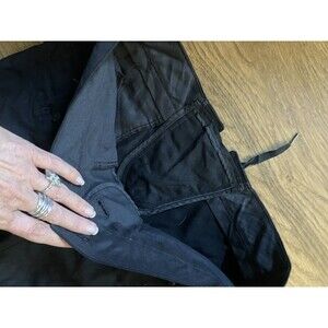 Stylish and comfortable men's wide-leg pants in classic black. Perfect for any occasion.first Button on the right needs replacing, but otherwise beautiful pants. Fits ladies 10 / or medium.
