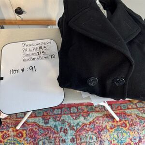 Men's Black Wool Pea Coat Size 12R Double-Breasted US Navy Style