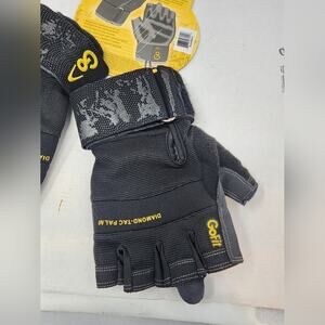 These Men's Black Workout Gloves by Go Fit are perfect for your training sessions. Designed for comfort and support, they feature an adjustable fit and a durable construction ideal for various workouts. In good pre-owned condition, these gloves show some remnants of tape on the tops (see pics) but are ready for action. Sized at L, they're a great addition to your fitness gear!