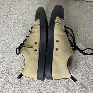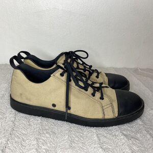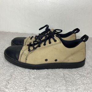 Stylish men's sneakers featuring a sleek black and tan design. Perfect for casual outings and everyday wear.