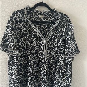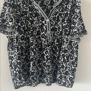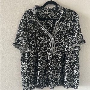 Stylish men's shirt featuring a bold black and white floral pattern. Perfect for casual outings or a night out. Comfortable and trendy design.