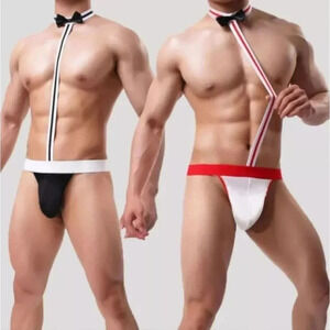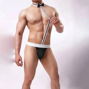 Mens Black and White Sexy Bowtie Underwear, Outfits for Men, Sexy Outfits Men