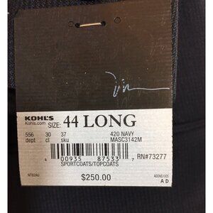 Mens Blazer Marc Anthony Size 44 Long Sport Coat Business Navy Blue Wool Blend N