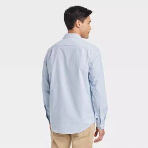 Mens Blue And White Performance Dress Standard Fit Long Sleeve Button-Down Shirt