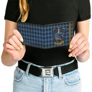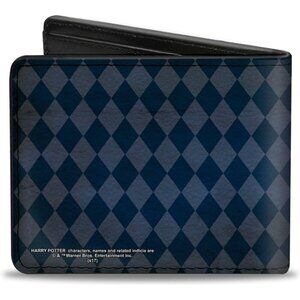 Buckle-Down Men's PU Bifold Wallet-Ravenclaw Crest/Diamonds Weathered Blues/Gold, Multicolor, 4.0" x 3.5"