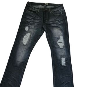 Men's Blue Black Wash Distressed Denim Jeans (No Tags, Never Worn)