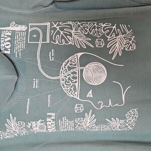 Streetwear style hoodie in teal blue with bold “Free Your Mind” graphic on the front and artistic brain/creativity graphic on the back. Soft fleece interior, kangaroo pocket, and adjustable drawstring hood. A unique and rare find — perfect for fans of Big Gigantic or statement streetwear looks.