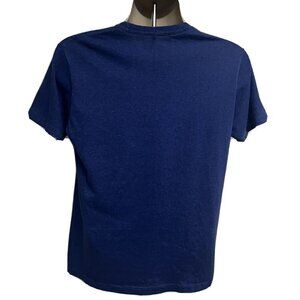 Mens Blue Graphic T-Shirt Small/Medium Unisex Cat Wsup Stretch Animal Print Lightweight Cotton Blend Novelty Funny. Great Pre-Owned Condition Gently Worn. Ships from smoke free home.