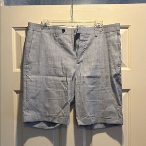 Stylish and comfortable men's blue gray striped shorts, perfect for casual outings. Cuffed at the end of each leg opening.
