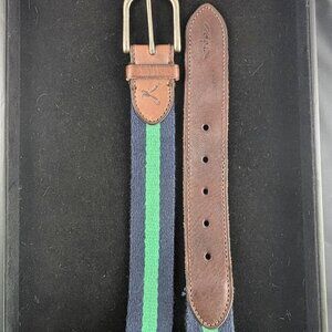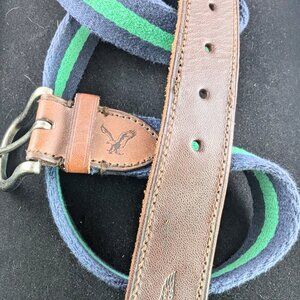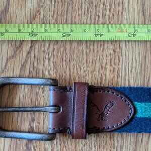 Men’s Blue & Green Stripe Belt – Leather & Woven Canvas by American Eagle Outfit