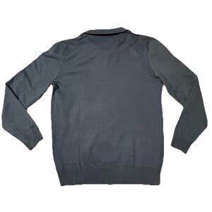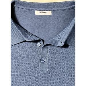 Men’s Blue Long Sleeve Collared Knit Polo Sweater Textured Front Size Large