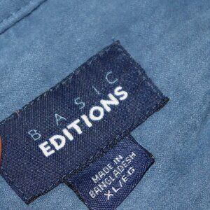 Men's Blue Microsuede long sleeve button-down shirt by Basic Edition Size XL